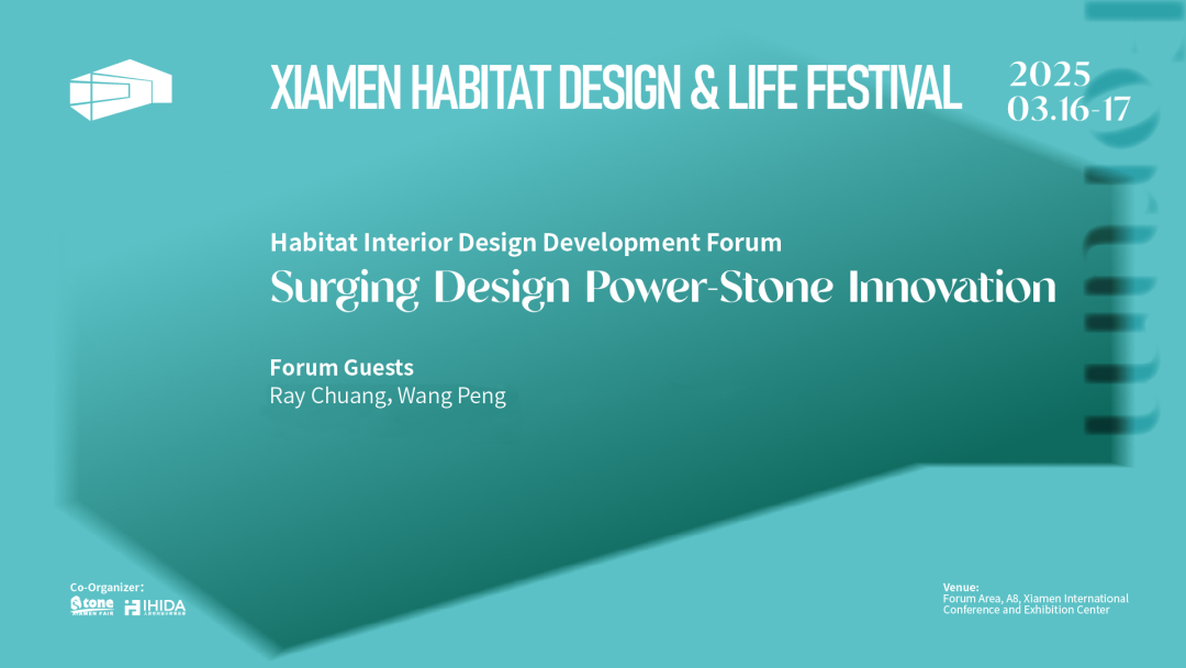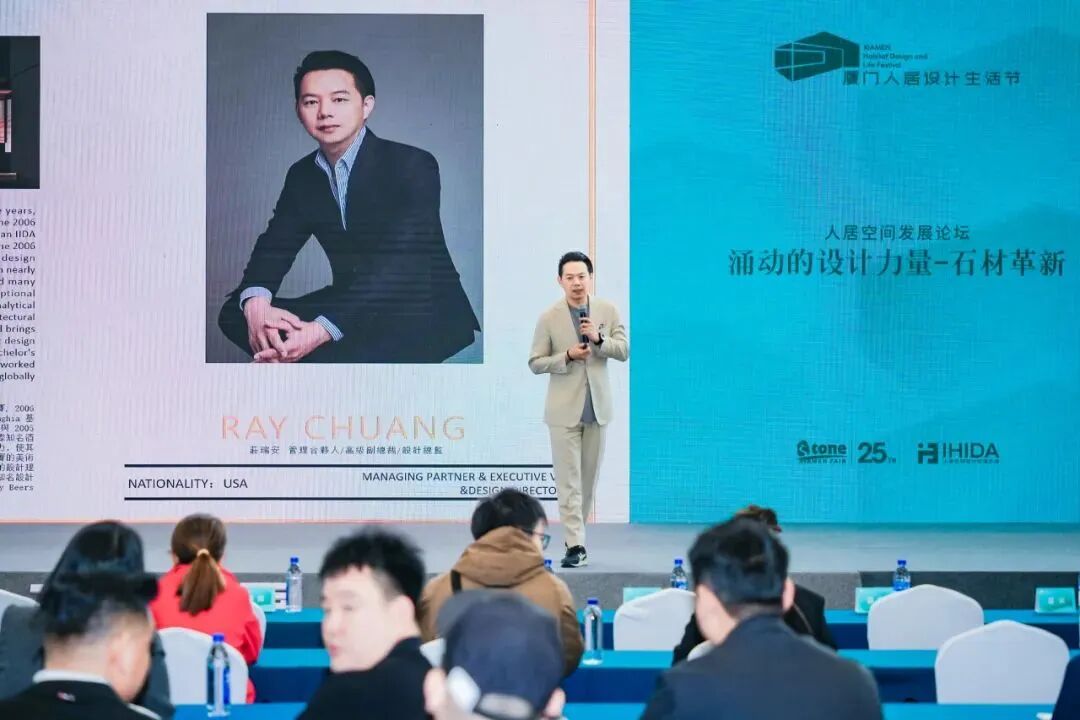 On March 17, the Habitat Interior Design Development Forum [Surging Design Power · Stone Innovation] was successfully held in Hall A8 of the Xiamen International Conference and Exhibition Center, with an enthusiastic on-site atmosphere. Co-curators of the Xiamen Habitat Design & Life Festival, Mr. Ray Chuang, Senior Vice President/Managing Partner of CCD, and Mr. Wang Peng, Founder/Design Director of Peng & Partners, took the stage successively to deliver design presentations on distinct themes.