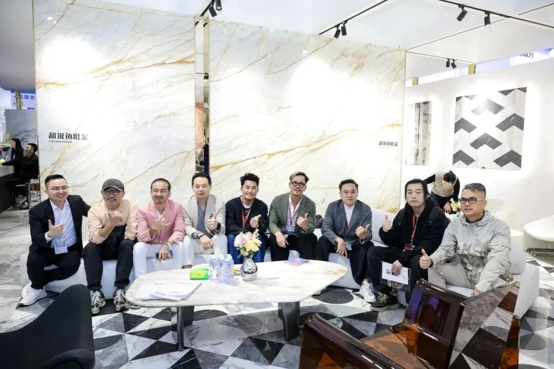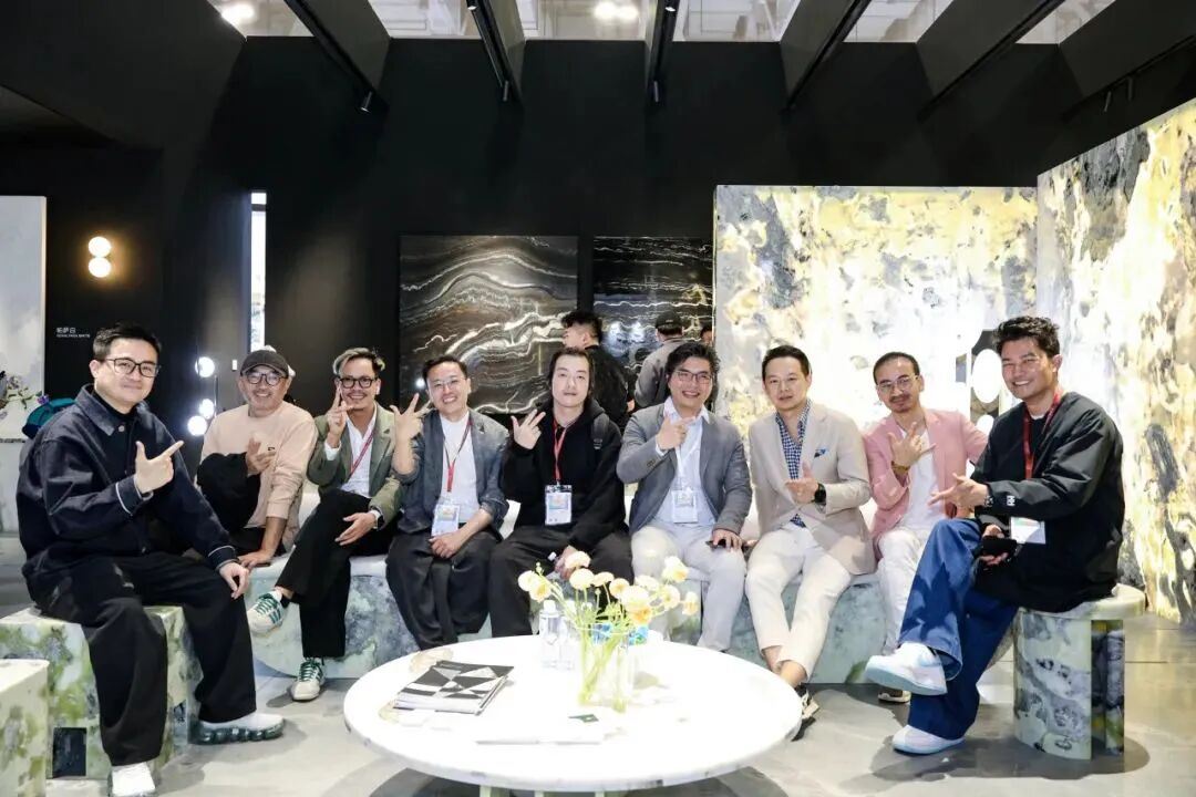 开展当天,策展设计师们一同逛展,随后前往各合作石材品牌展位进行面对面交流。他们围绕石材运用、设计理念融合等话题深入探讨,不仅为石材品牌带来了新的思路和视角,也为设计师们提供了更多关于材料应用的灵感与启发。